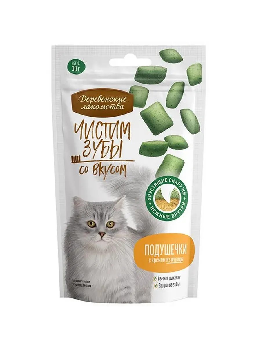 Деревенские лакомства Подушечки Чистим зубы с кремом из курицы для кошек 30г*1шт
