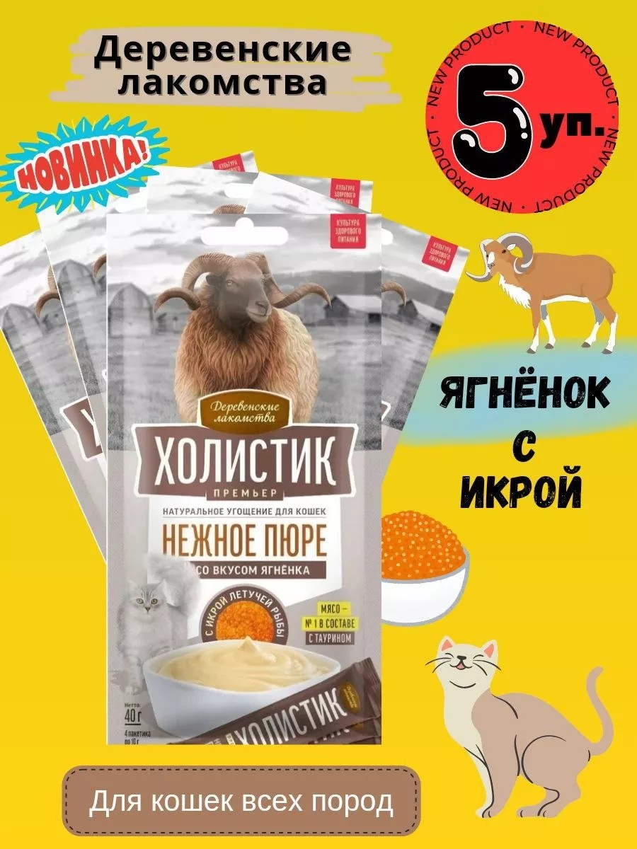 Деревенские лакомства пюре со вкусом ягненка и икры,5*40гр