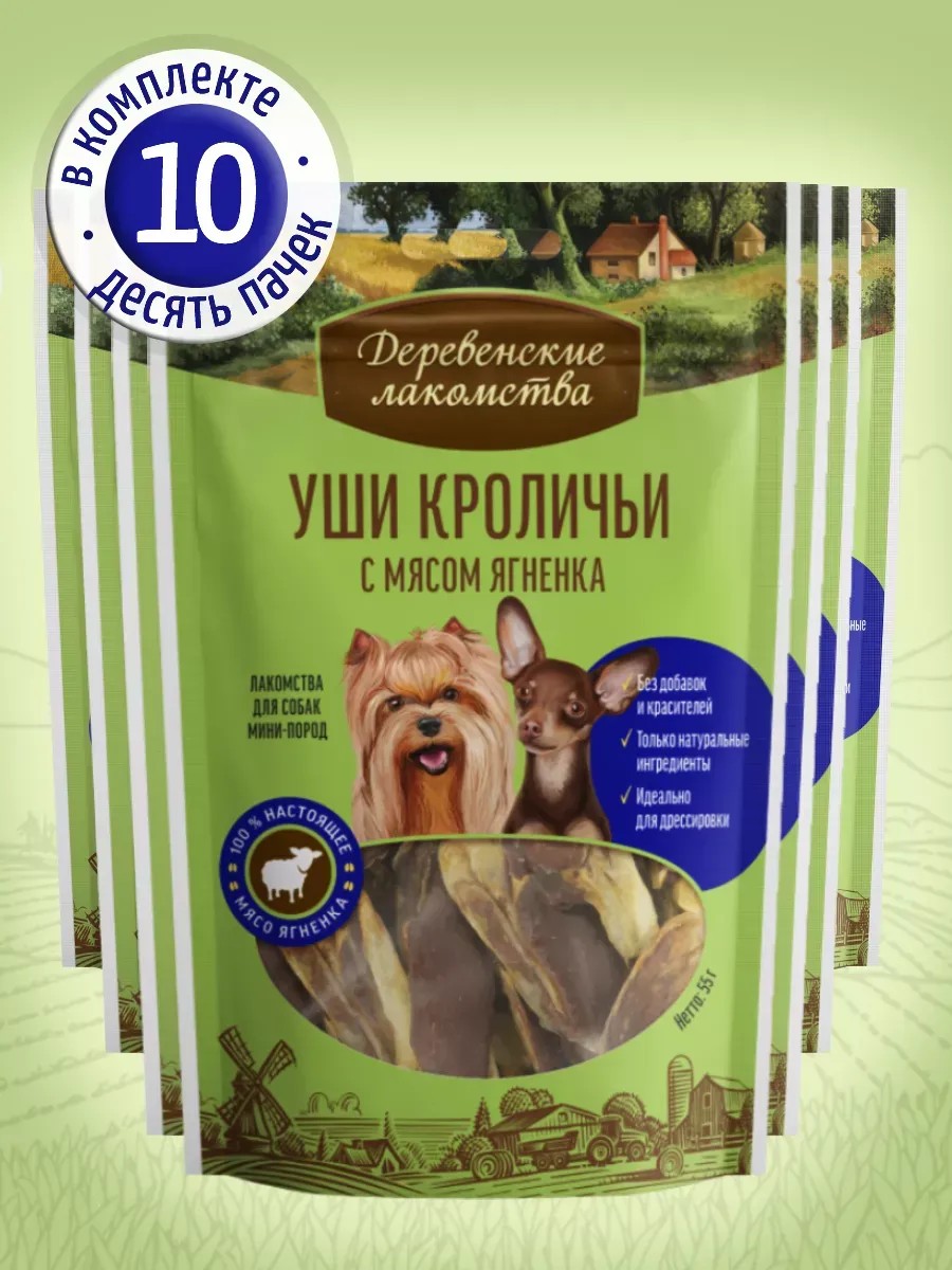 Деревенские лакомства Уши кроличьи с мясом ягненка, 55 грамм 10 упаковок