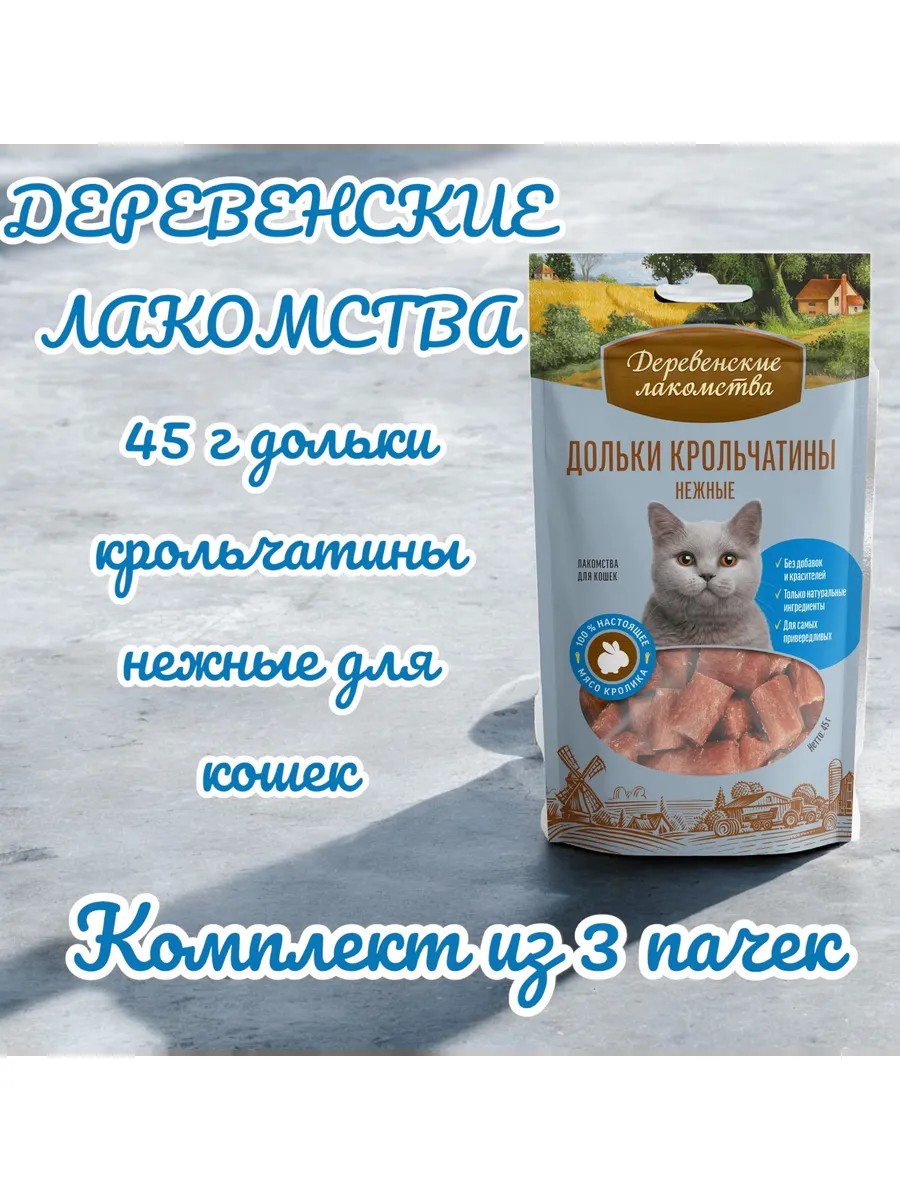 Деревенские лакомства Дольки крольчатины нежные для кошек 45 г, 3 пачки