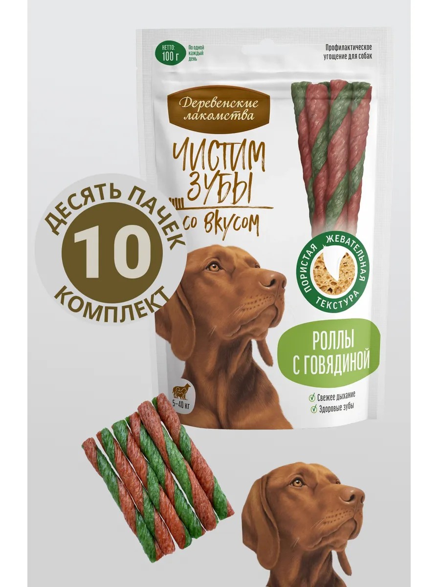 Уникальная пористая структура роллов с говядиной эффективно очищает всю поверхность зубов от налета, препятствуя образованию зубного камня и кариеса. Собаки обожают эти лакомства за насыщенный мясной аромат. Теперь чистить зубы не только просто, но и вкусно! Лакомство предназначено для взрослых собак всех пород.