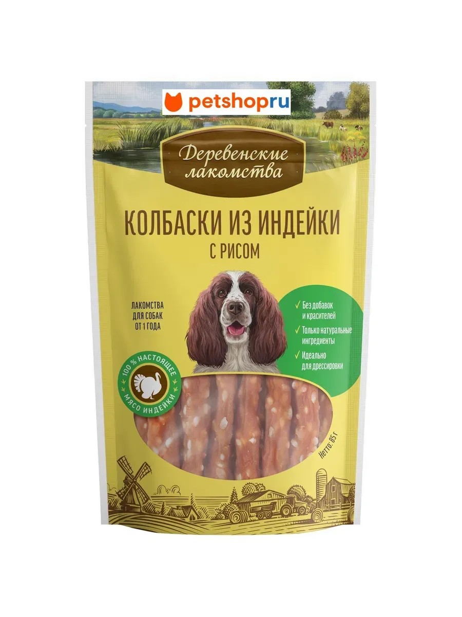 The most tender turkey sausages with added rice will be an excellent reward for your dog's good behavior.