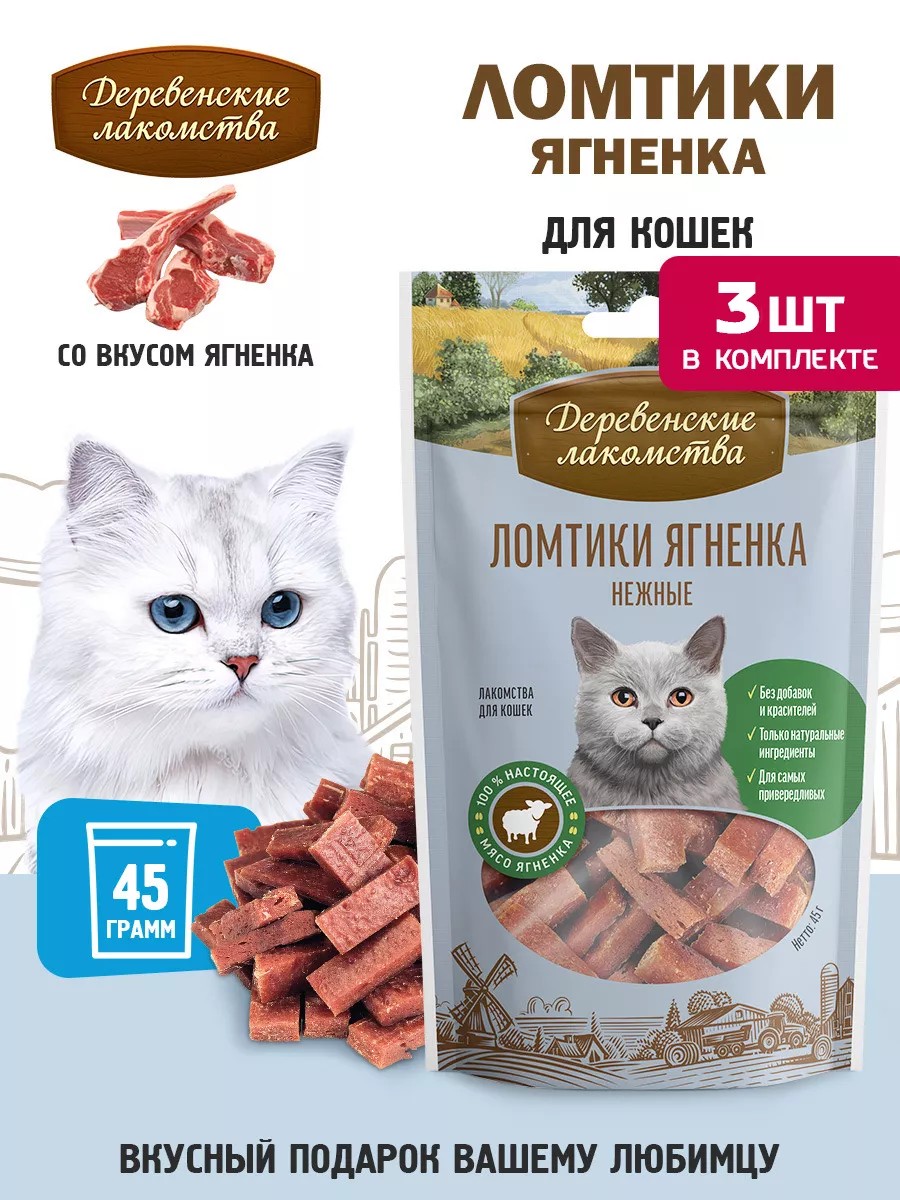 Деревенские лакомства Ломтики ягненка нежные для кошек, 3 шт