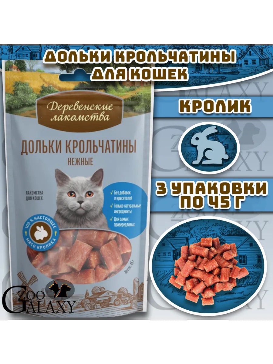 Деревенские лакомства Дольки крольчатины для кошек 3х45 г