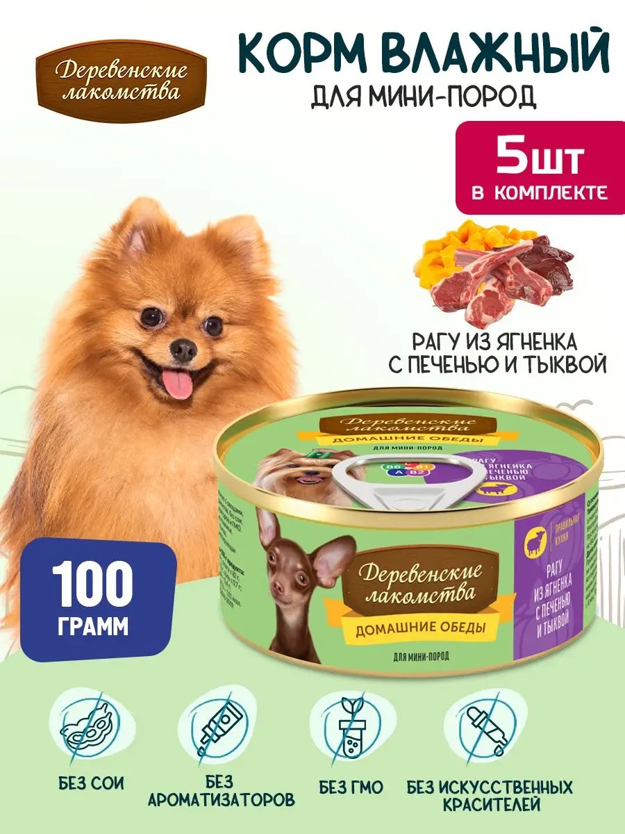 Деревенские лакомства Рагу из ягненка с печенью и тыквой для мини-пород, 5 шт