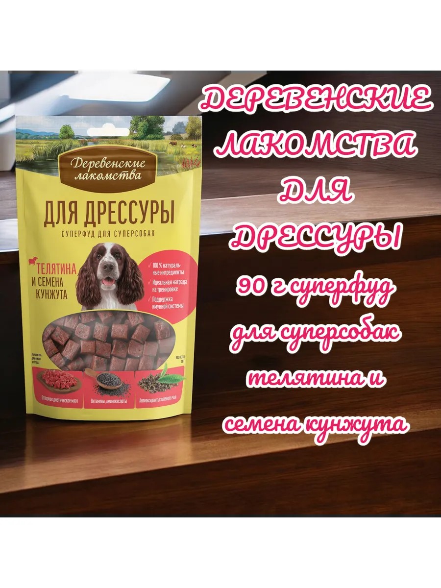 Деревенские лакомства Суперфуд д собак ДЛЯ ДРЕССУРЫ телятина семена кунжута 90гр