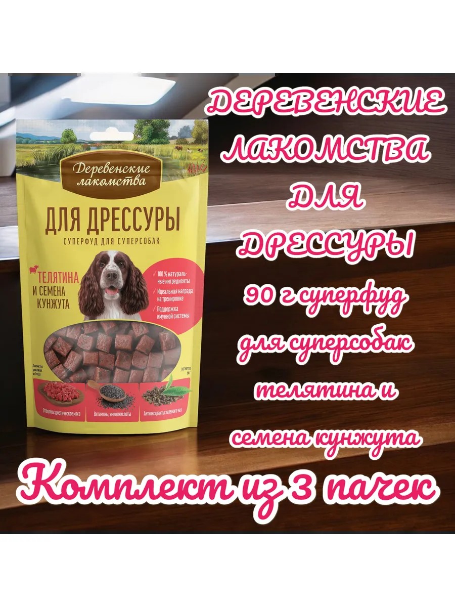 Деревенские лакомства Суперфуд д/собак телятина/семена кунжута 90гр, 3 пачки