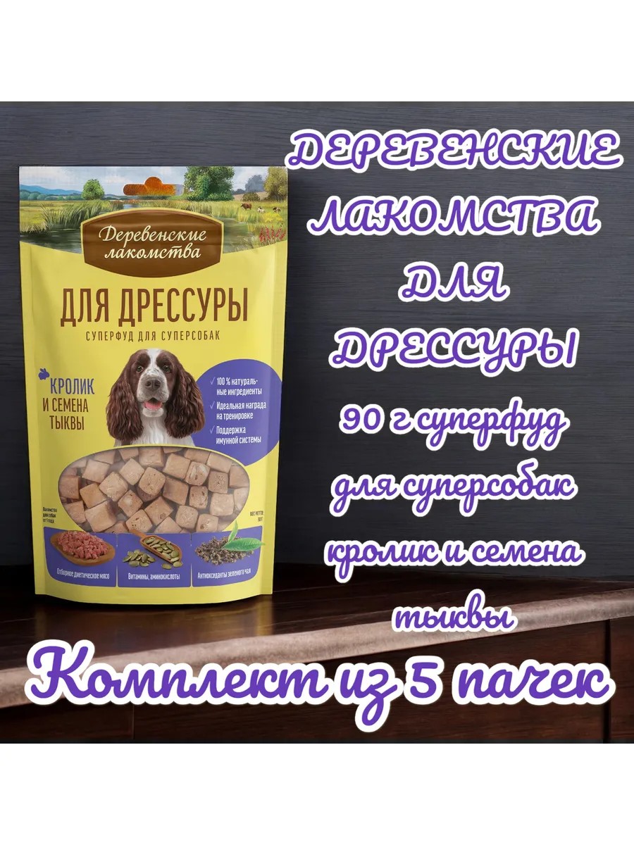 Деревенские лакомства Суперфуд д/суперсобак кролик/семена тыквы 90гр, 5 пачек