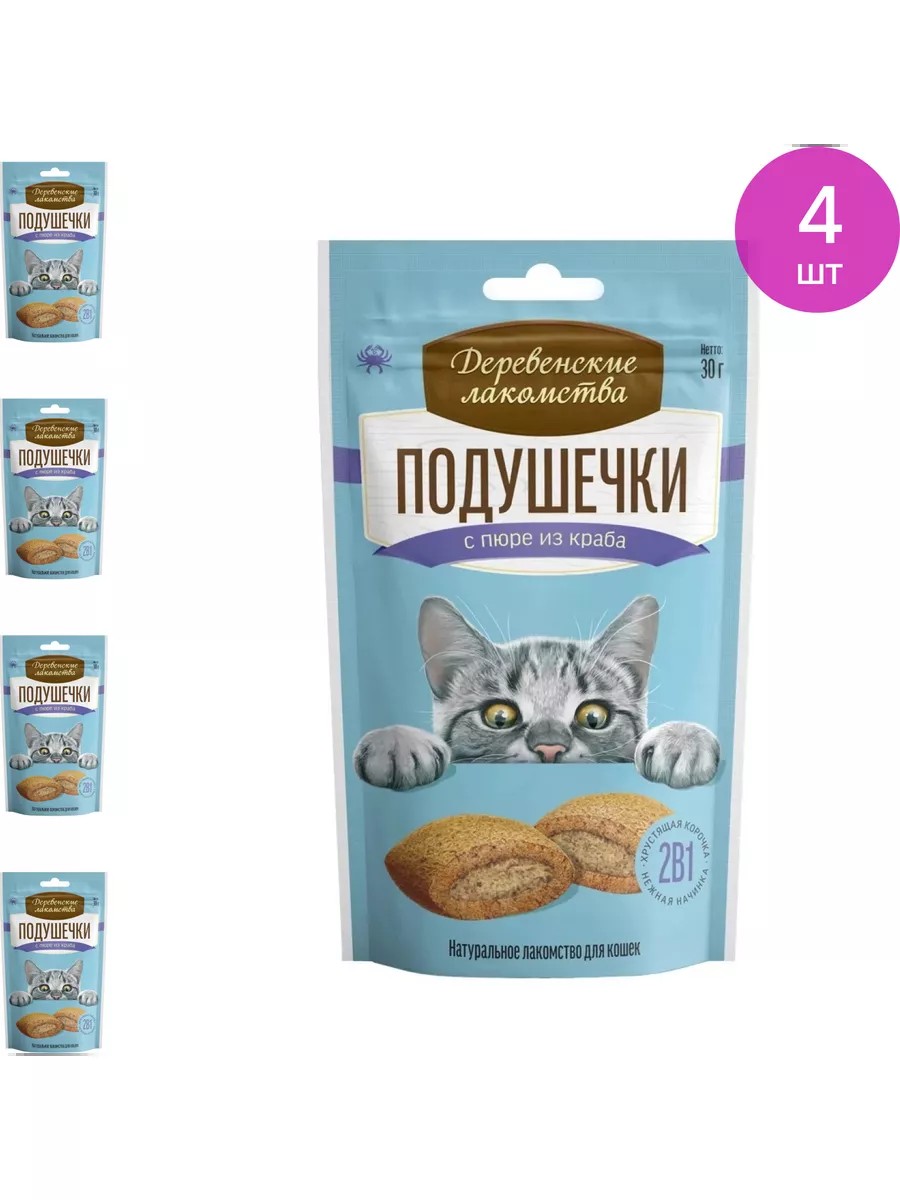 Деревенские лакомства Вкусняшки для кошек подушечки с пюре из краба 30г, 4 шт