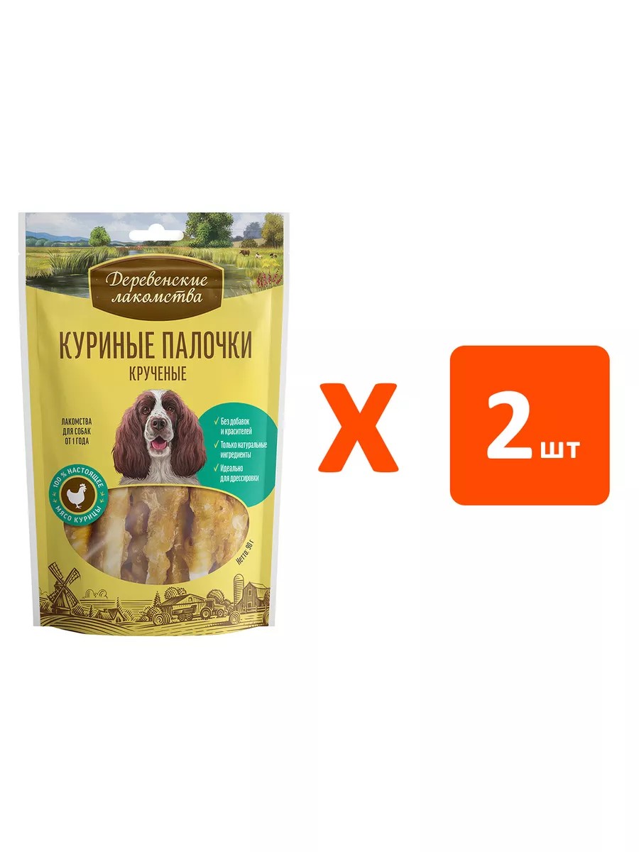Деревенские лакомства Лакомство палочки куриные для собак крученые 90 г 2 шт