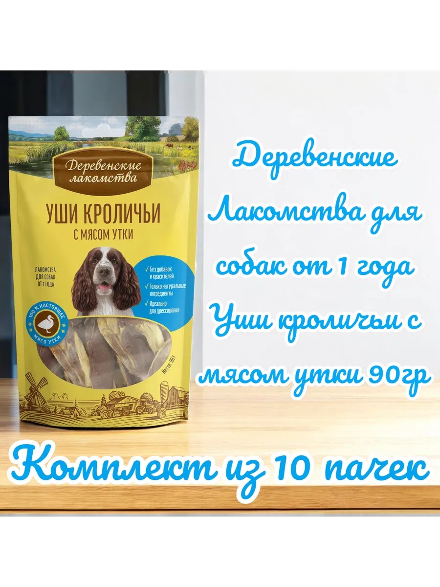 Деревенские лакомства Лакомство Уши кроличьи с мясом утки для собак, 90г, 10 пачек