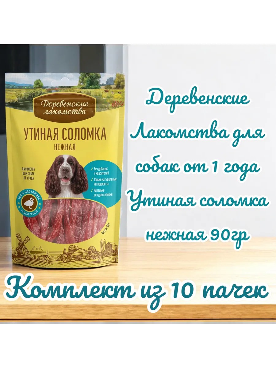 Деревенские лакомства Лакомство Утиная соломка нежная для собак, 90 г, 10 пачек