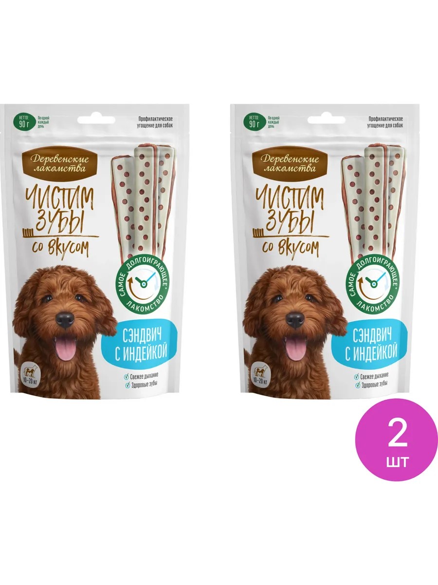 Деревенские лакомства Лакомство для собак Чистим Зубы сэндвич с индейкой 90г, 2 шт