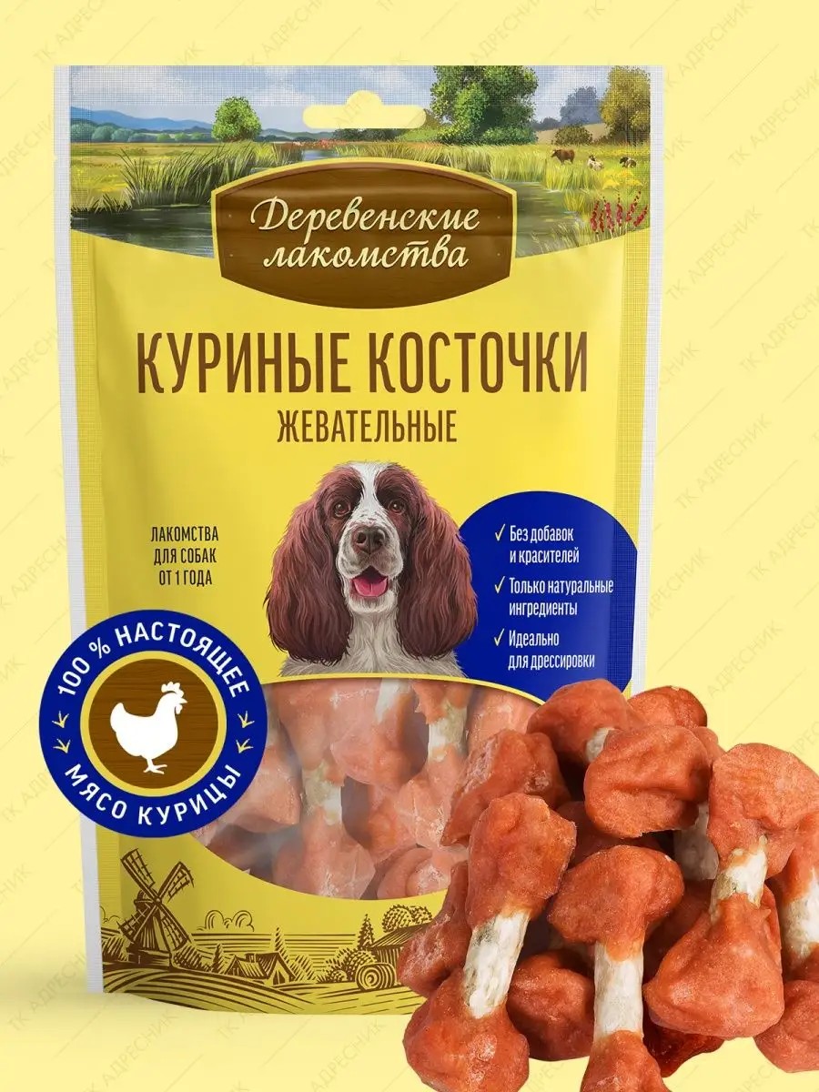 Деревенские лакомства Лакомство для собак "Куриные косточки жевательные", 90 гр
