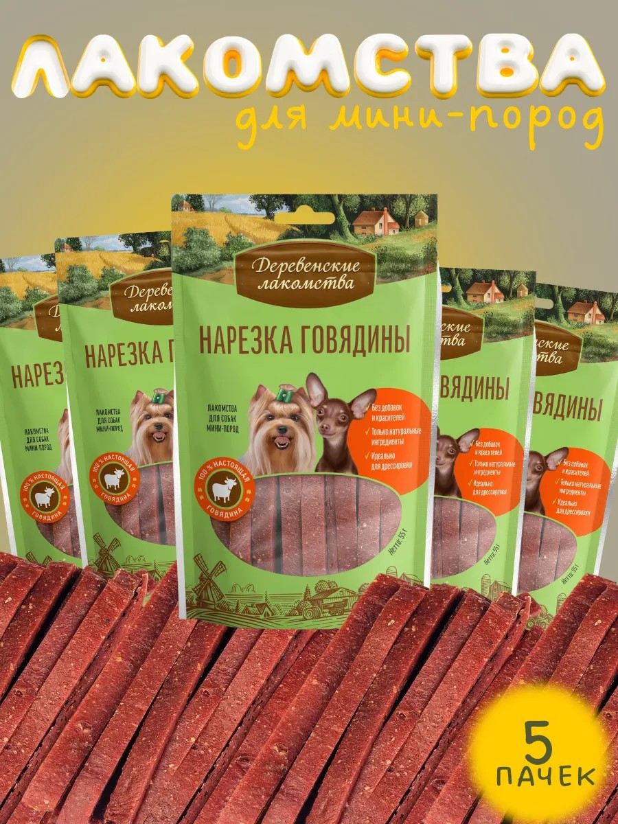 Деревенские лакомства Лакомства для собак мал.пор. комплект нарезка говядины 5х55г