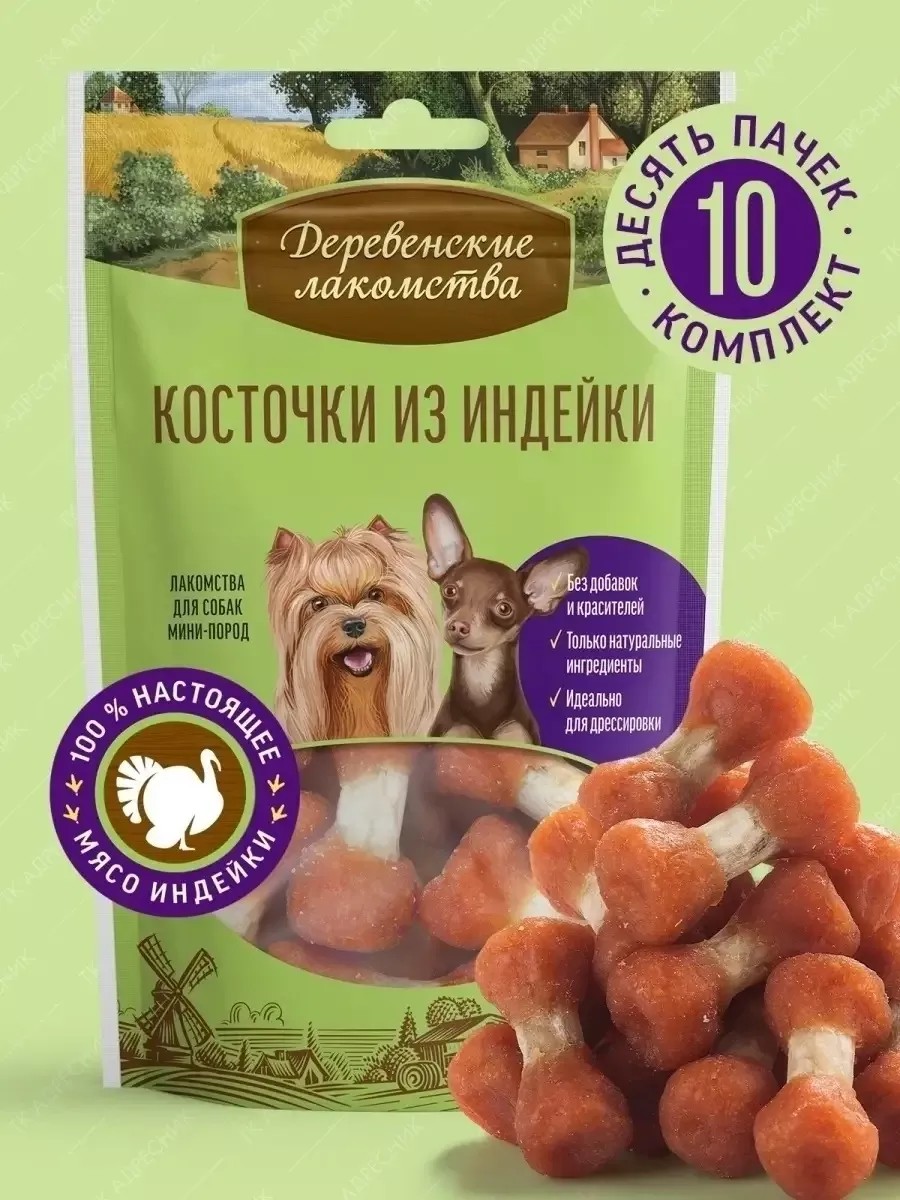 Деревенские лакомства Косточки из индейки для малых собак 10 шт х 55г