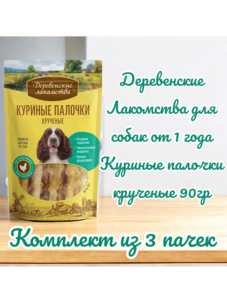 Деревенские лакомства Лакомство Куриные палочки крученые 90 г для собак, 3 пачки