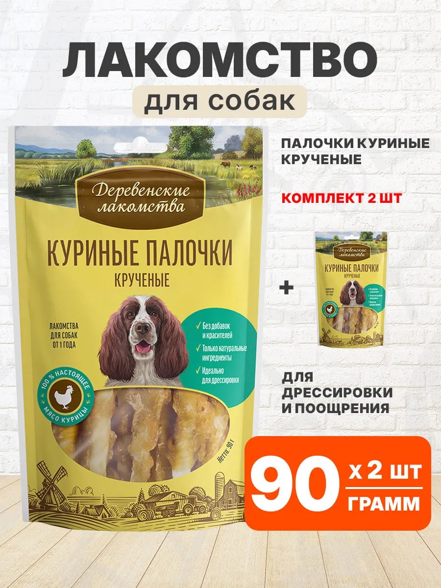 | Комплектация | Лакомства деревенские для собак палочки курицы крученые 90 гр - 2 шт |