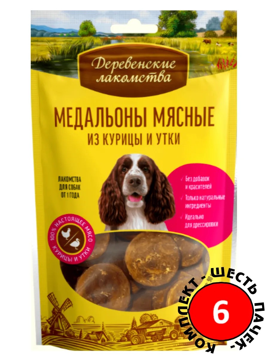 Деревенские лакомства Лакомство для собаки медальоны мясные 6 шт