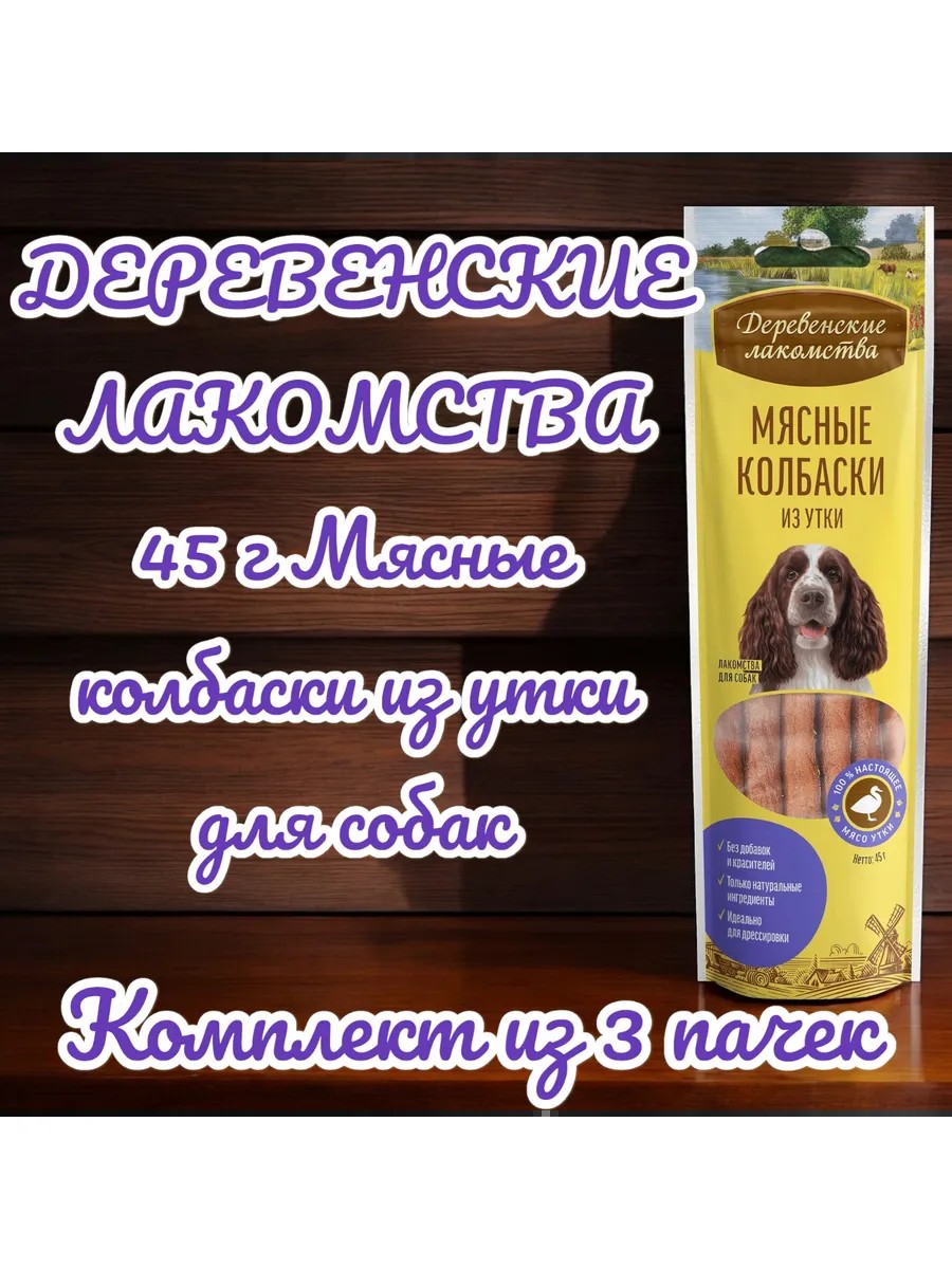 Деревенские лакомства Лакомство Мясные колбаски из утки для собак 45г, 3 пачки