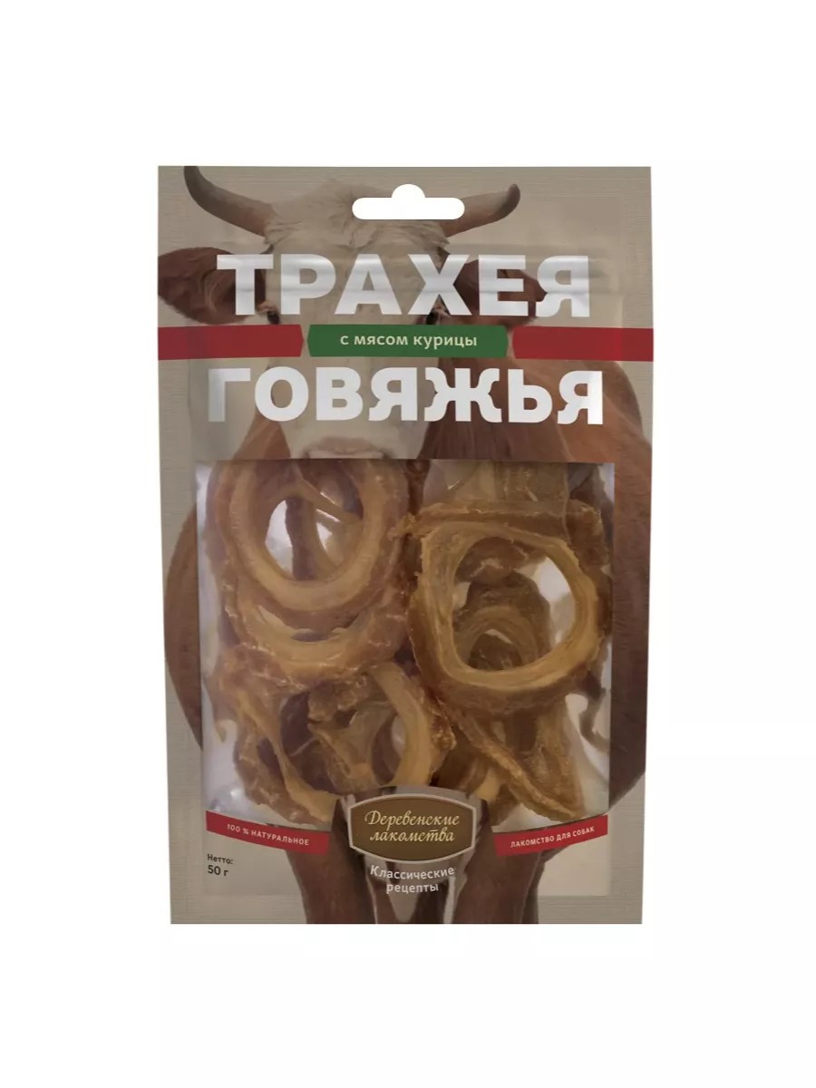 Деревенские лакомства Трахея говяжья с мясом курицы 50г