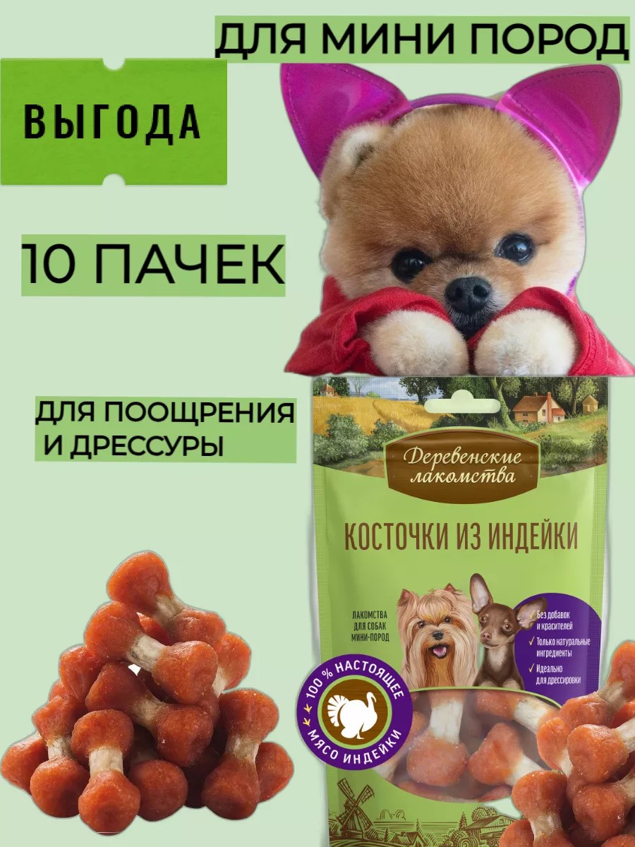 Лакомство для мелких собак Деревенские лакомства "Косточки из индейки" с аппетитным мясом индейки привлечет даже самого приверделивого питомца.