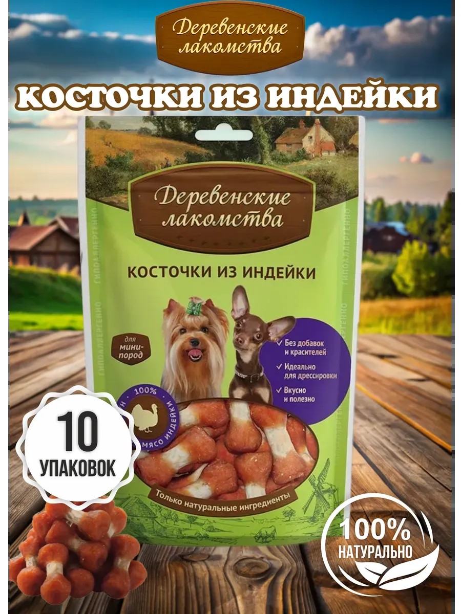 Деревенские лакомства Лакомство Косточки из Индейки для Собак Мини-пород 55г*10шт