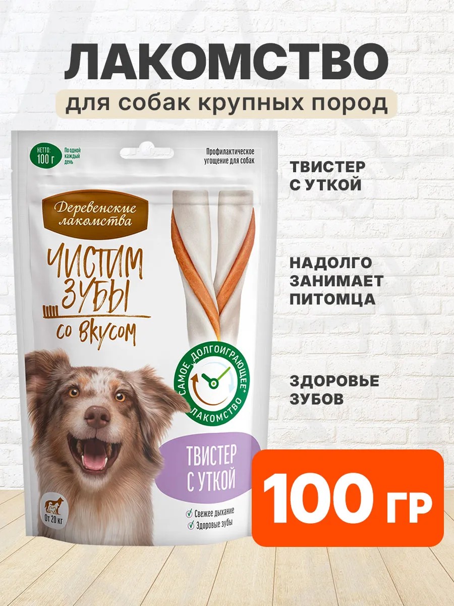 Деревенские лакомства Лакомство твистер Чистим Зубы для крупных собак утка 100 г