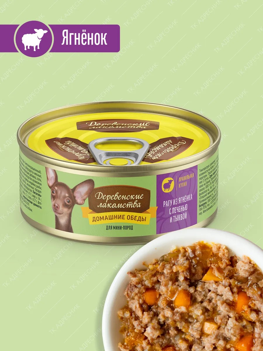 | Full product name | Wet food for mini-breed dogs "Village Delicacies - Homemade Dinners" Lamb stew with liver and pumpkin, 100 g |