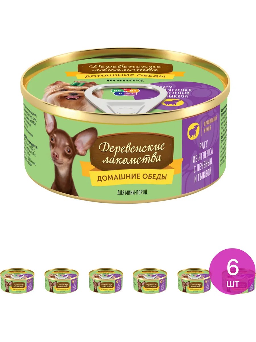 Деревенские лакомства Корм влажный для собак рагу из ягненка с тыквой, 100г, 6 шт