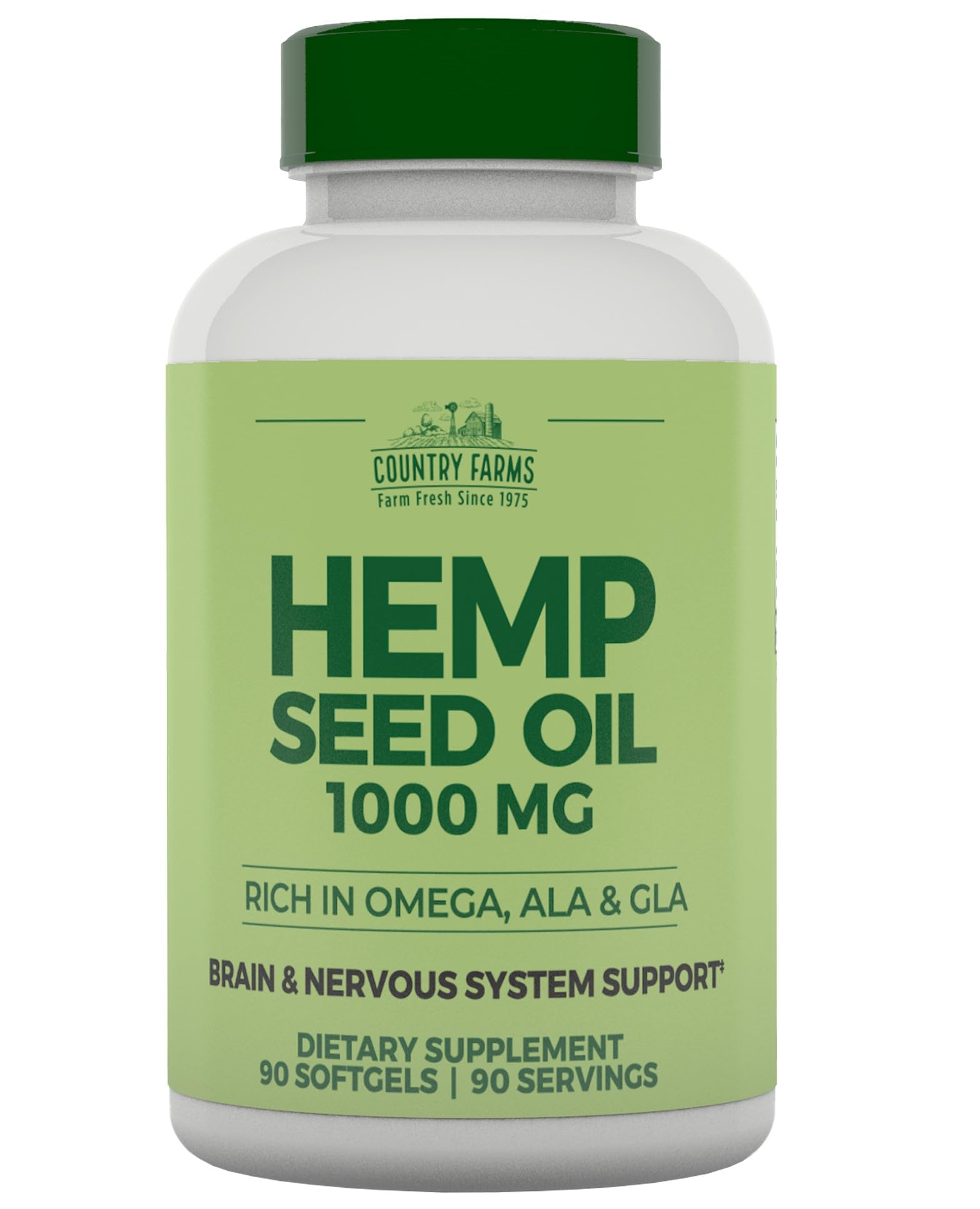 COUNTRY FARMS Hemp Seed Oil 1000mg, Rich in Omega, ALA and GLA, Immune Support, 90 Count