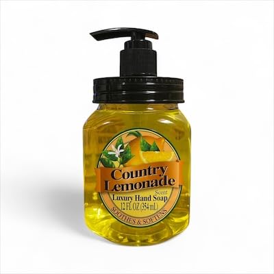 Transform your daily hand washing routine into a luxurious experience with this Country Lemonade Luxury Hand Soap. The generous 12-fluid-ounce bottle features a convenient pump dispenser for easy, mess-free use. This gentle formula soothes and softens your hands while cleansing, leaving them feeling silky smooth after each wash. The lemon fragrance brings the fresh, delicate scent of fresh-squeezed lemonade to your bathroom or kitchen sink. The rich, creamy lather rinses clean while maintaining your skin's natural moisture balance. Perfect for both home and office use, this hand soap combines practical cleansing with a touch of everyday luxury. The beautiful yellow-tinted formula comes in an elegant bottle that adds a decorative touch to any sink area. Suitable for all skin types, this hand soap makes routine hand washing a delightful sensory experience while keeping your hands clean, soft, and lightly scented.