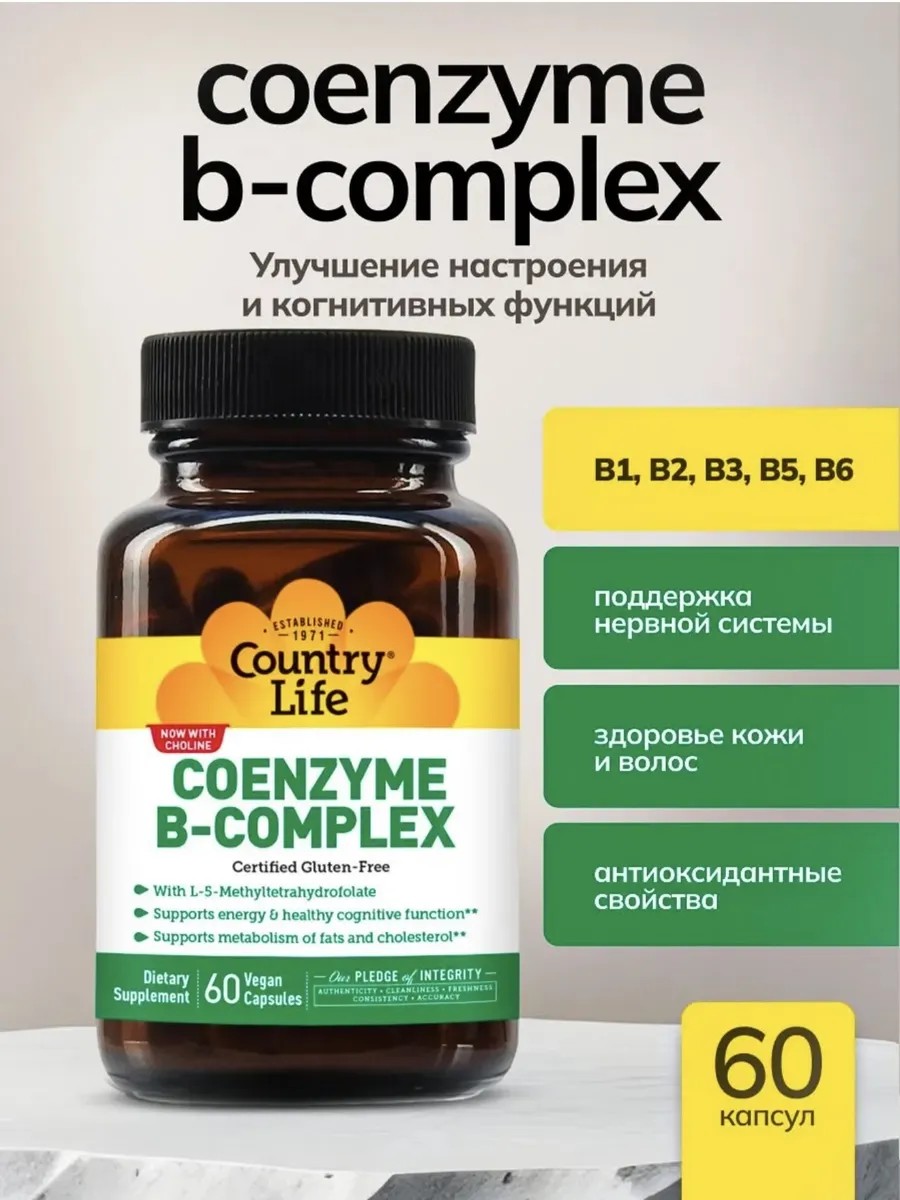 | Полное наименование товара | Country life, Coezyme B-complex 60 Vegan Capsules |