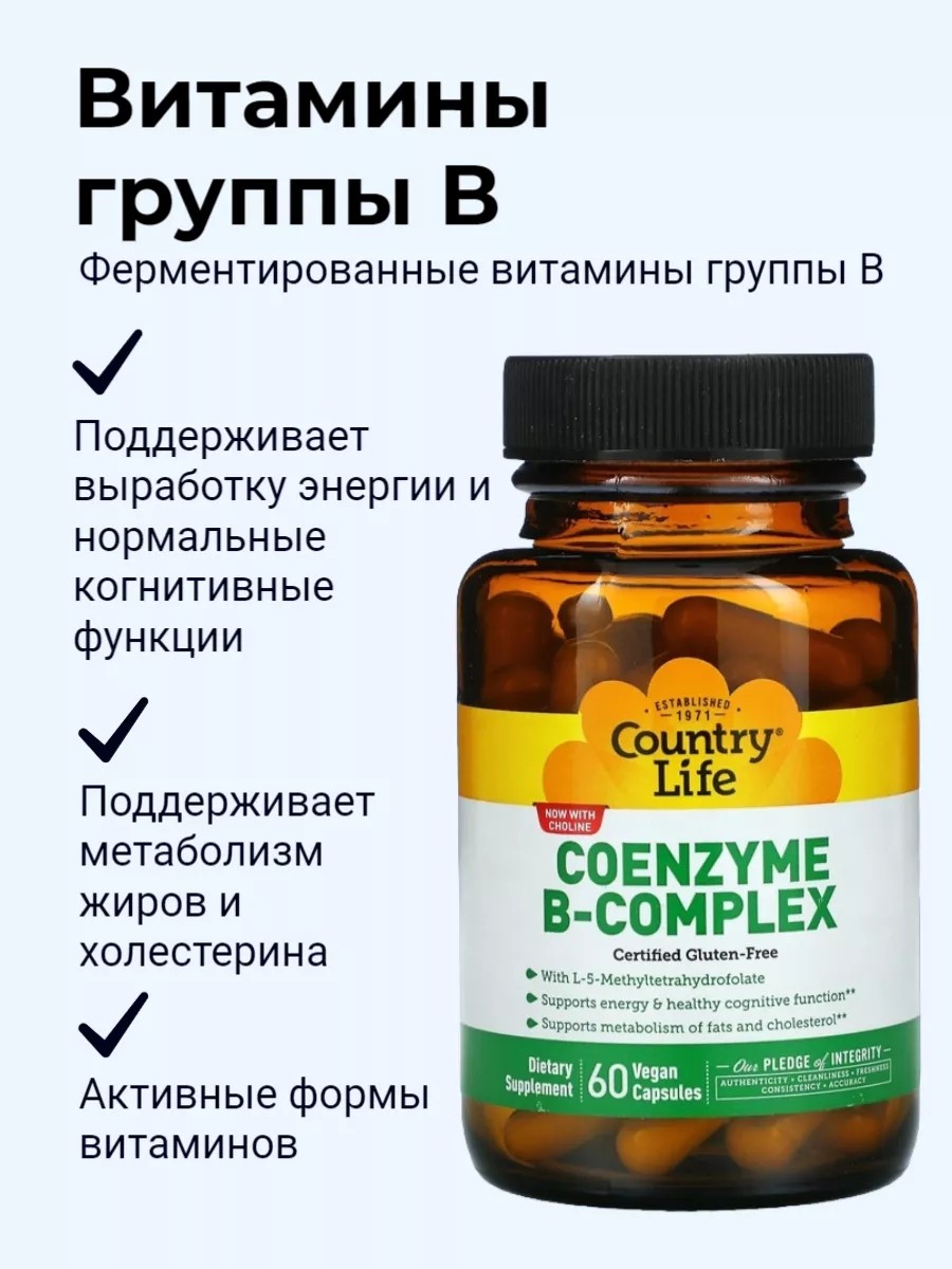 Country Life Витамины группы В, Coenzyme B-complex, 60 капсул