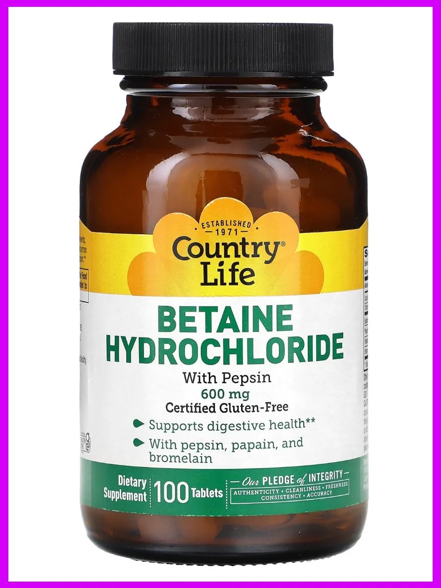 Country Life Бетаин гидрохлорид пепсин 100 таблеток