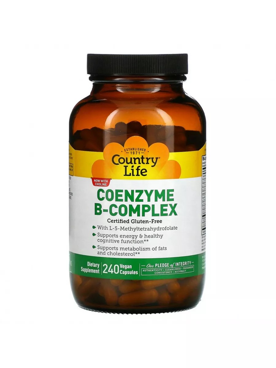 Country Life Комплекс коэнзимов группы B, 240 веганских капсул