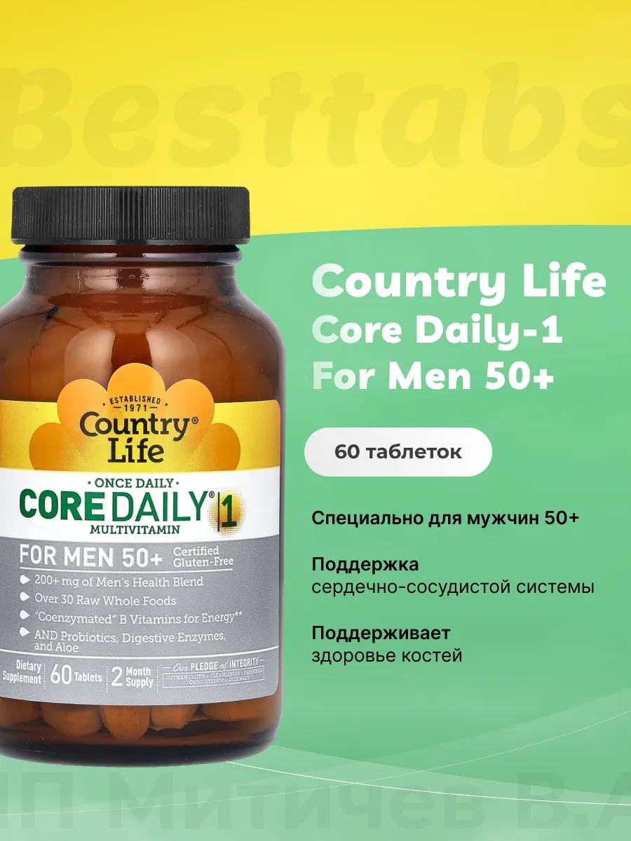 Country Life Core Daily-1 For Men 50+ — это комплексный мультивитаминный препарат, специально разработанный для мужчин старше 50 лет.