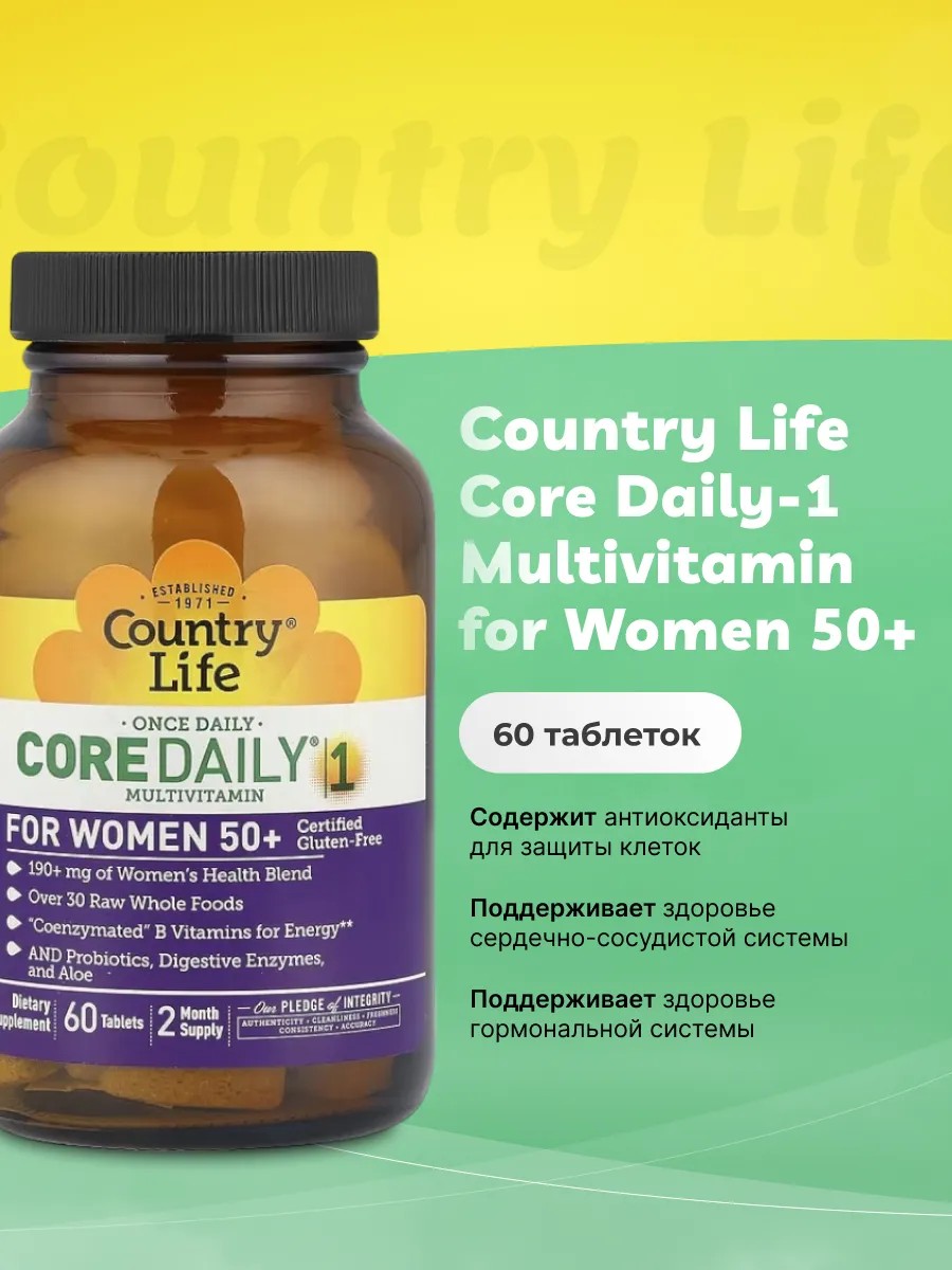 Country Life Core Daily-1 Multivitamin for Women 50+ is a high-quality multivitamin complex specially formulated for women over 50. At this age, the body requires additional support to maintain health and an active lifestyle.