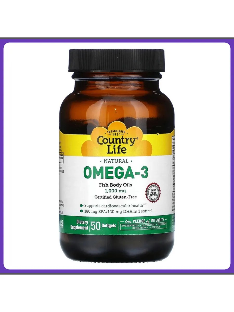 Рыбий жир из холодноводных рыб богат омега-3 жирными кислотами. В частности, Country Life предлагает продукт, содержащий 1000 мг этих ценных веществ, включая 180 мг эйкозапентаеновой кислоты (ЭПК) и 120 мг докозагексаеновой кислоты (ДГК). Одна капсула обеспечивает суточную потребность организма в этих важных соединениях.
