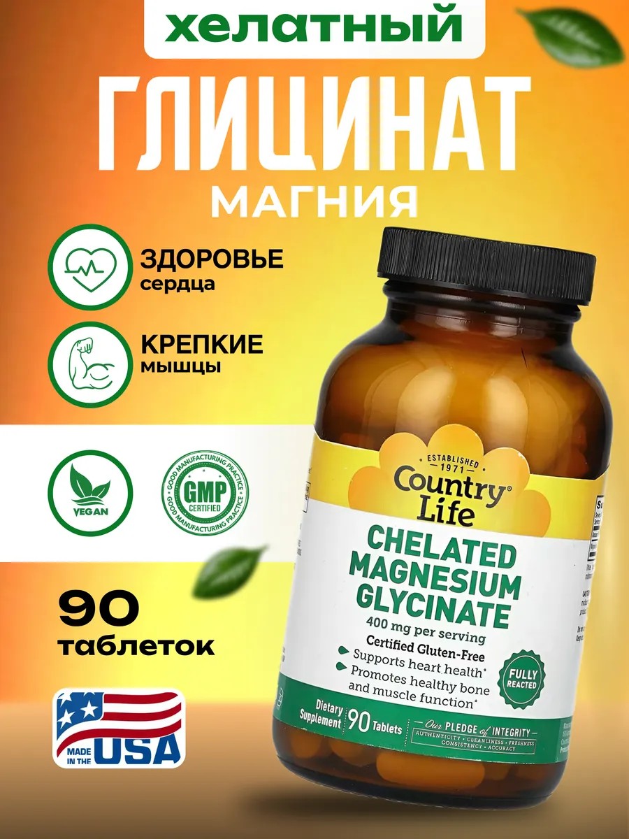 Country Life Хелатный глицинат магния 400 мг 90 таблеток