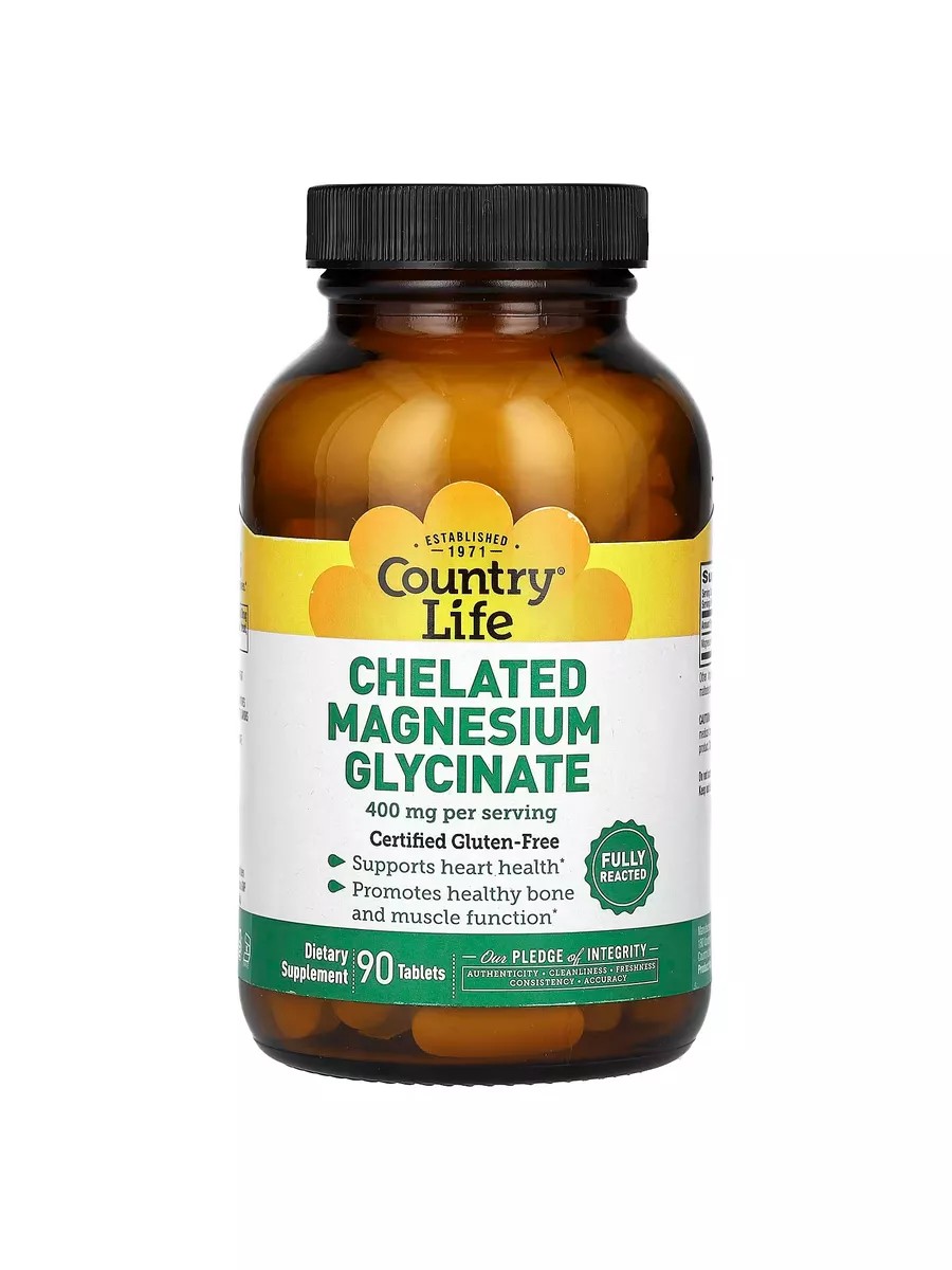 Country Life Хелатный глицинат магния, 400 мг, 90 таблеток