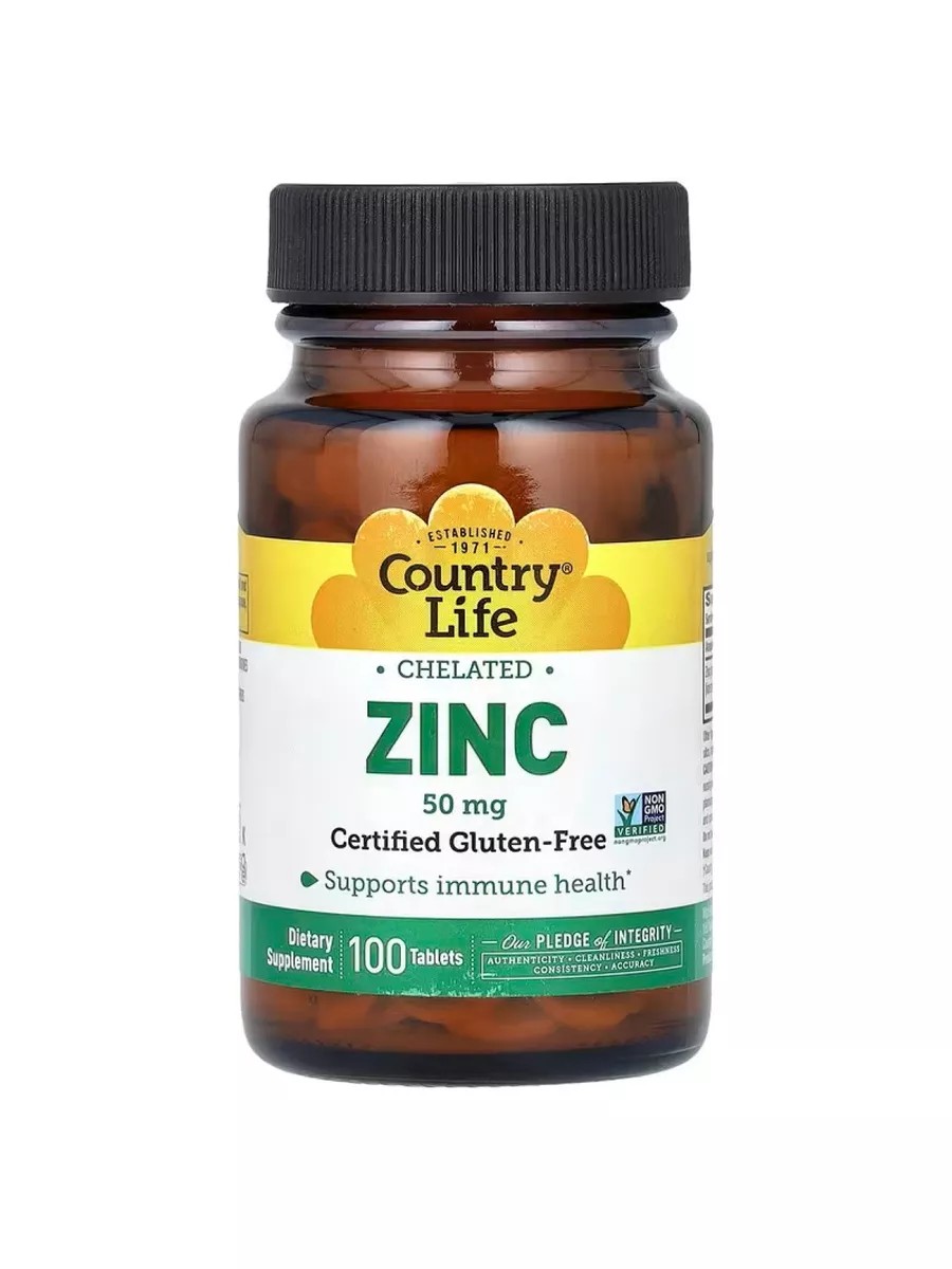 Country Life хелатный цинк 50 мг, 100 таблеток
