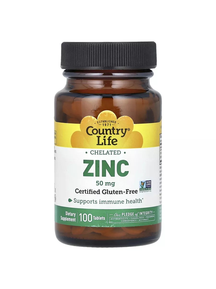 Country Life Хелатный цинк, 50 мг, 100 таблеток