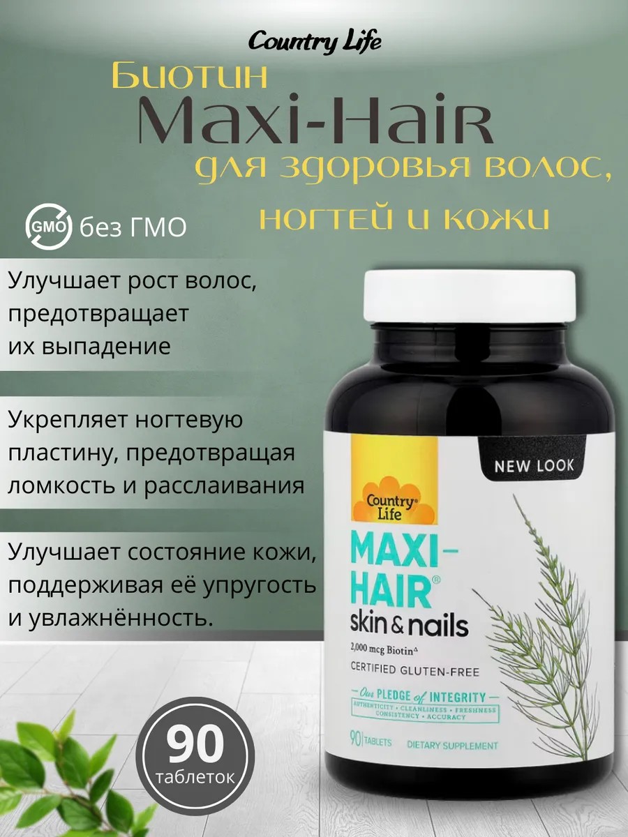 Country Life Maxi-Hair, добавка для кожи и ногтей, 90 таблеток
