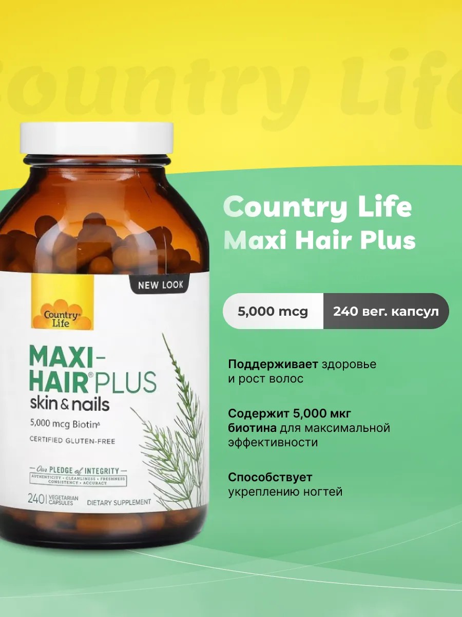 Country Life Maxi Hair Plus – биологически активная добавка с содержанием биотина.