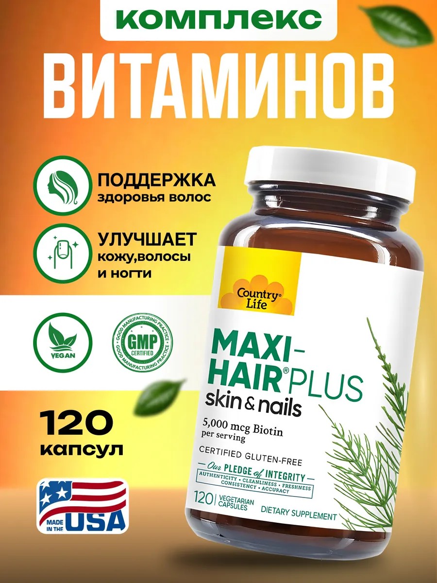 Country Life Maxi Hair Plus 5000 mcg Biotin 120 капсул