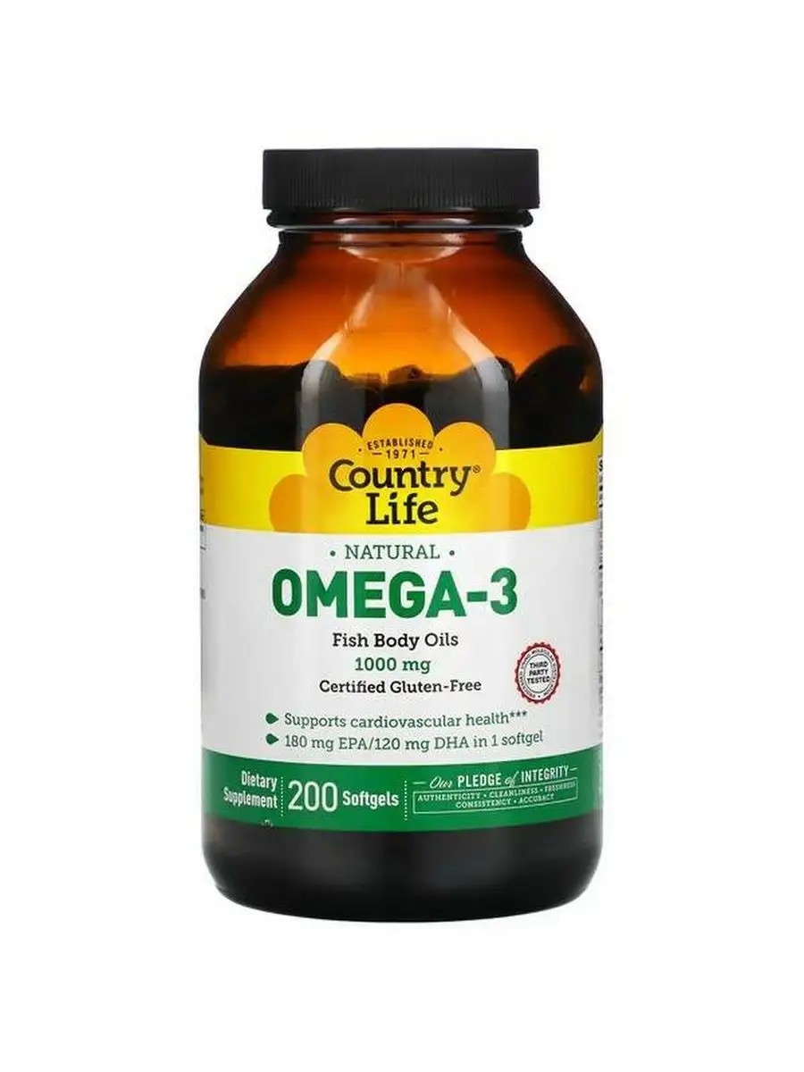 Country Life Омега-3, 1000 мг, 200 мягких таблеток