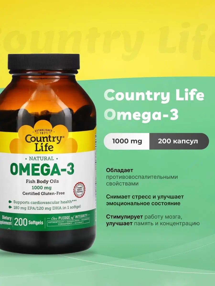 Country Life Omega-3 1000 mg - это идеальный выбор для тех, кто хочет улучшить свое здоровье и жить полноценной жизнью.