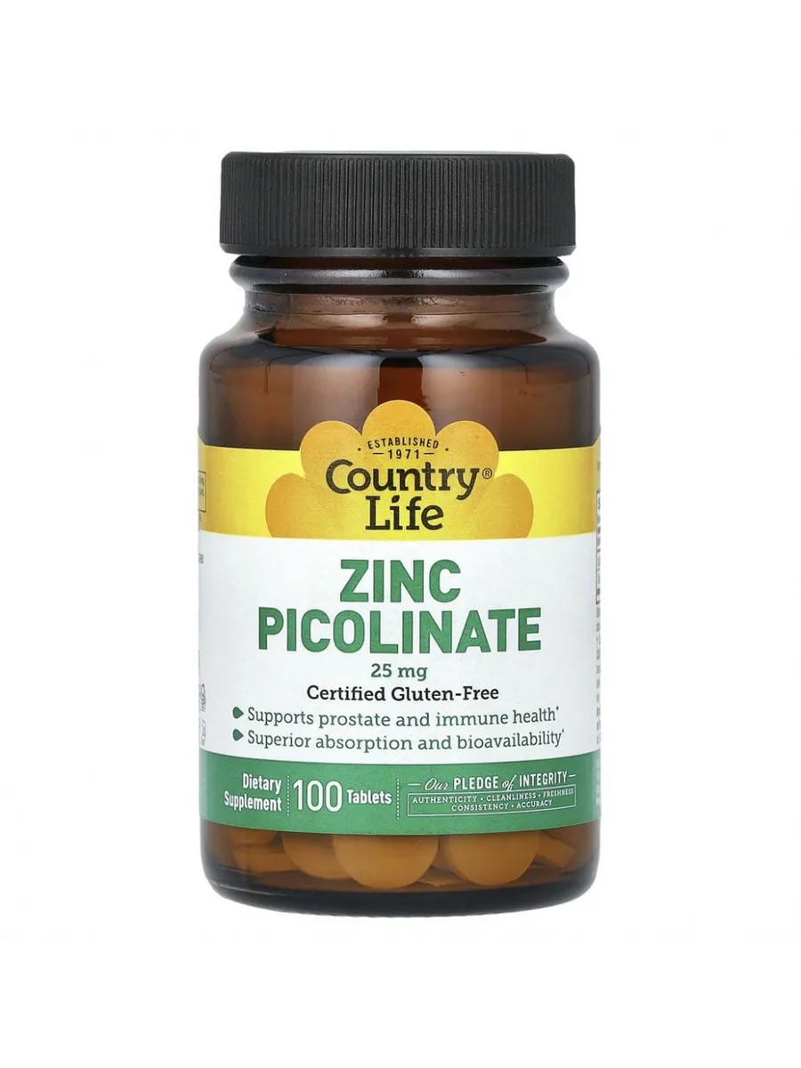 Country Life, пиколинат цинка, 25 мг, 100 таблеток