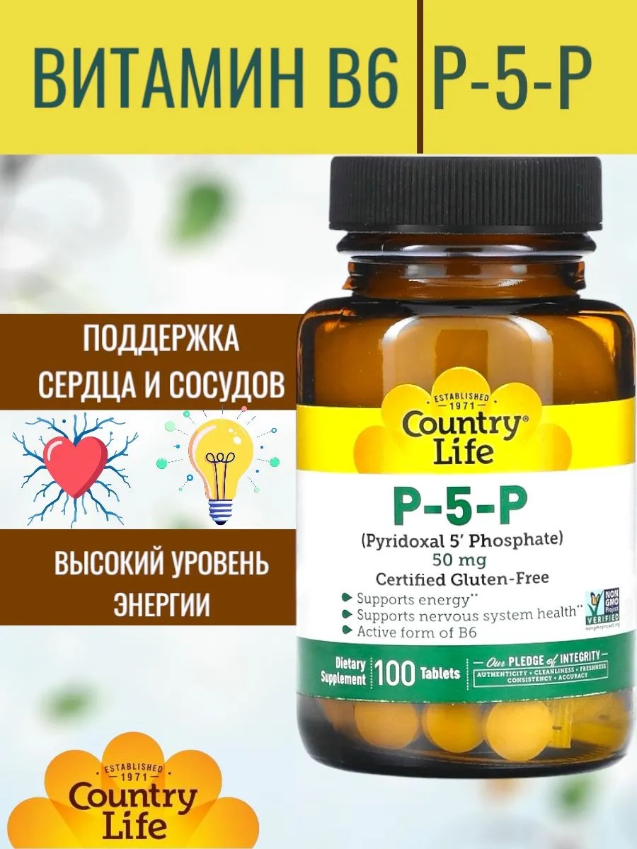 Country Life Витамин B6, P-5-P, 50 мг, 100 таблеток